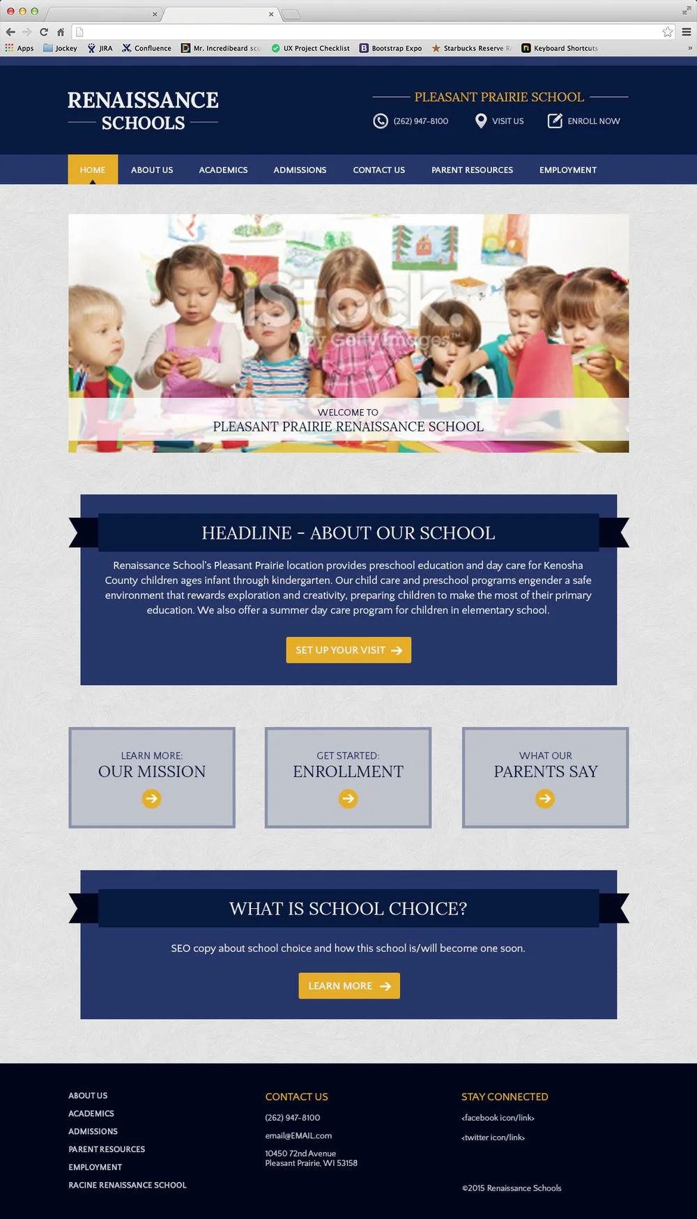 This local school choice option needed a mobile-friendly website with clear and accessible information for busy parents to learn about the school, schedule a tour, enroll, and easily contact. The existing website was designed for desktop only, and had just two pages with minimal information about the school itself. Worse, its SEO content (and ranking) was non-existent. I worked with the school director to create a new, responsive website with a more polished and professional look, as well as fully-fleshed out content. I constructed the information architecture, wrote search engine optimized copy across the site so it would appear in search rankings, and designed and coded the entire site with a personalized Bootstrap theme.