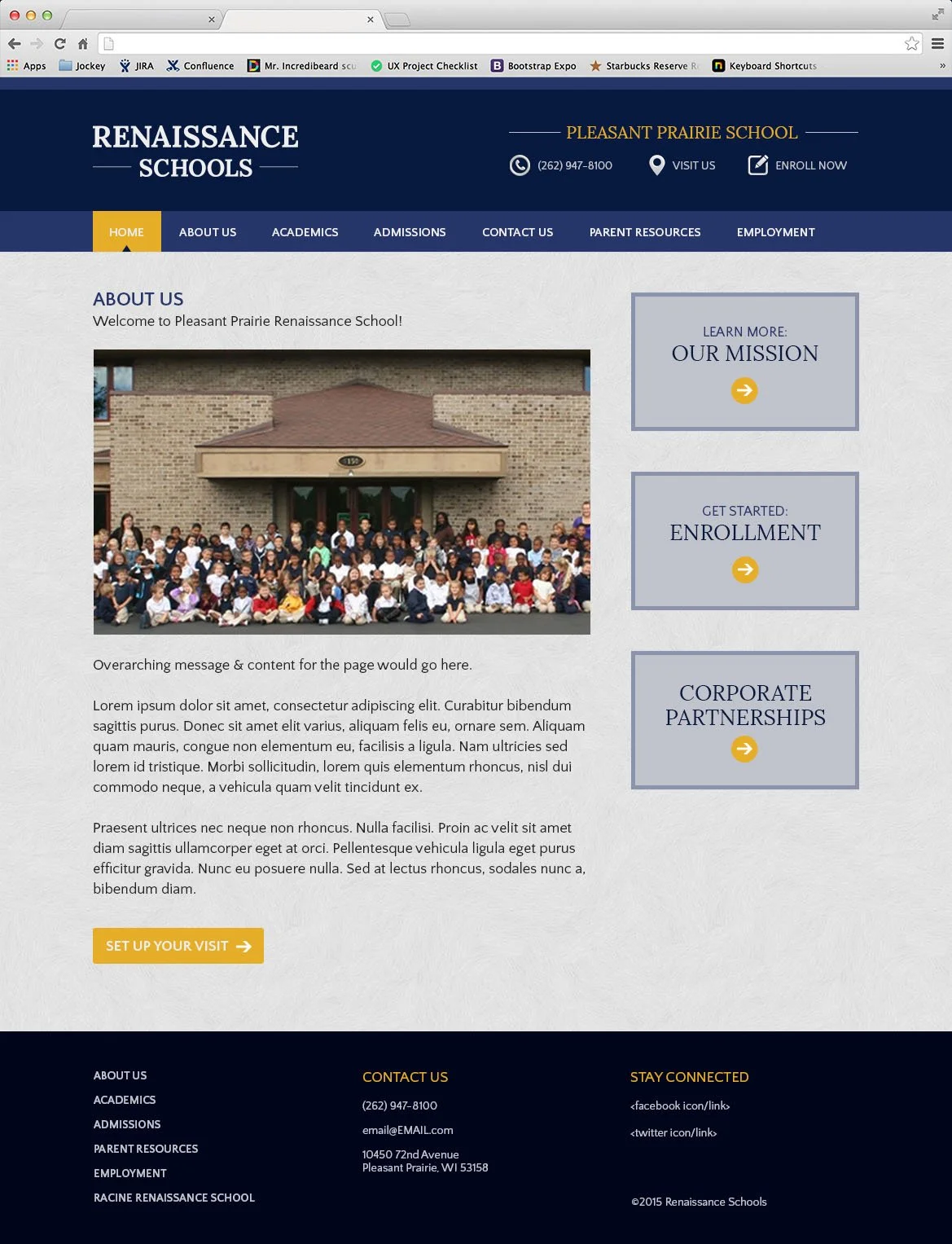 I mocked up the actual design of the home page and an interior page to get sign-off on overall design direction before I began to code everything.