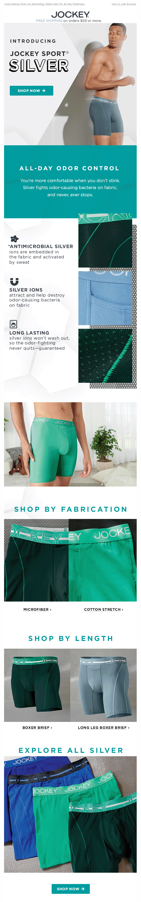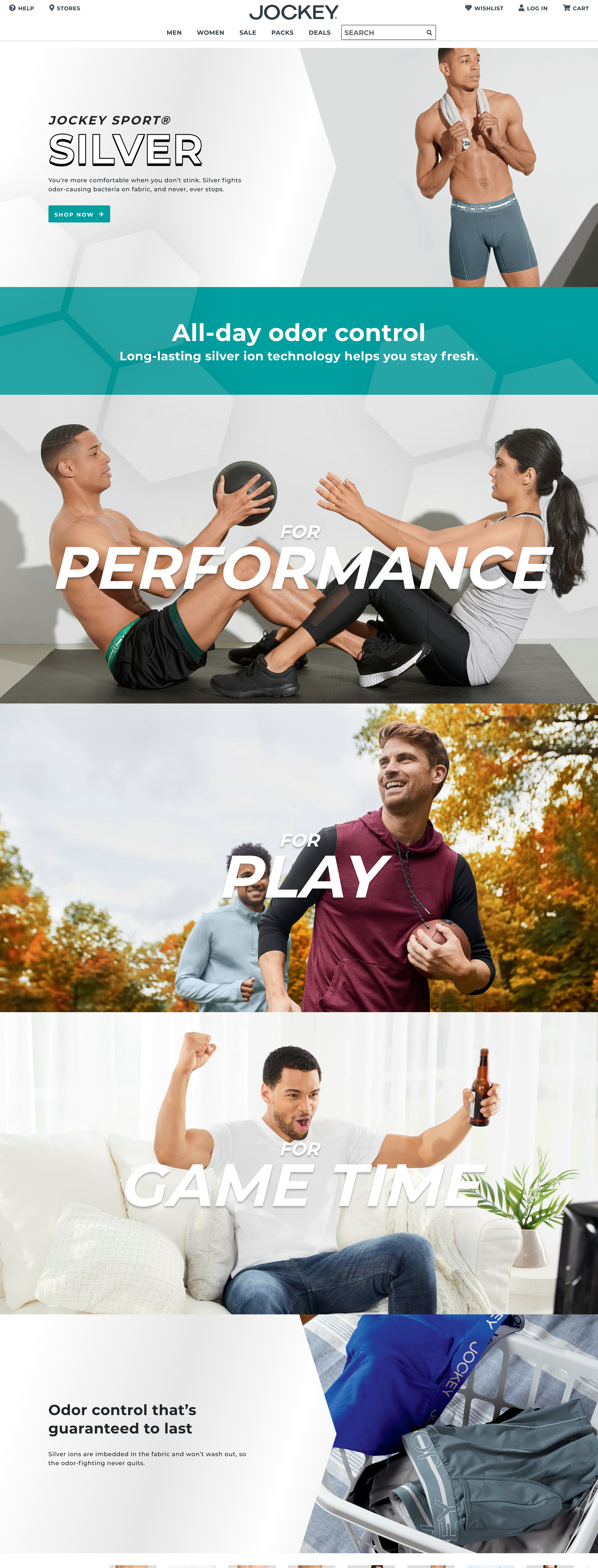 Led the creative direction, art direction, copywriting and design for the launch of a new more technical product. The goal was to market to a new consumer who might be familiar with this type of product already—underwear with silver ions woven in to help fight stink.